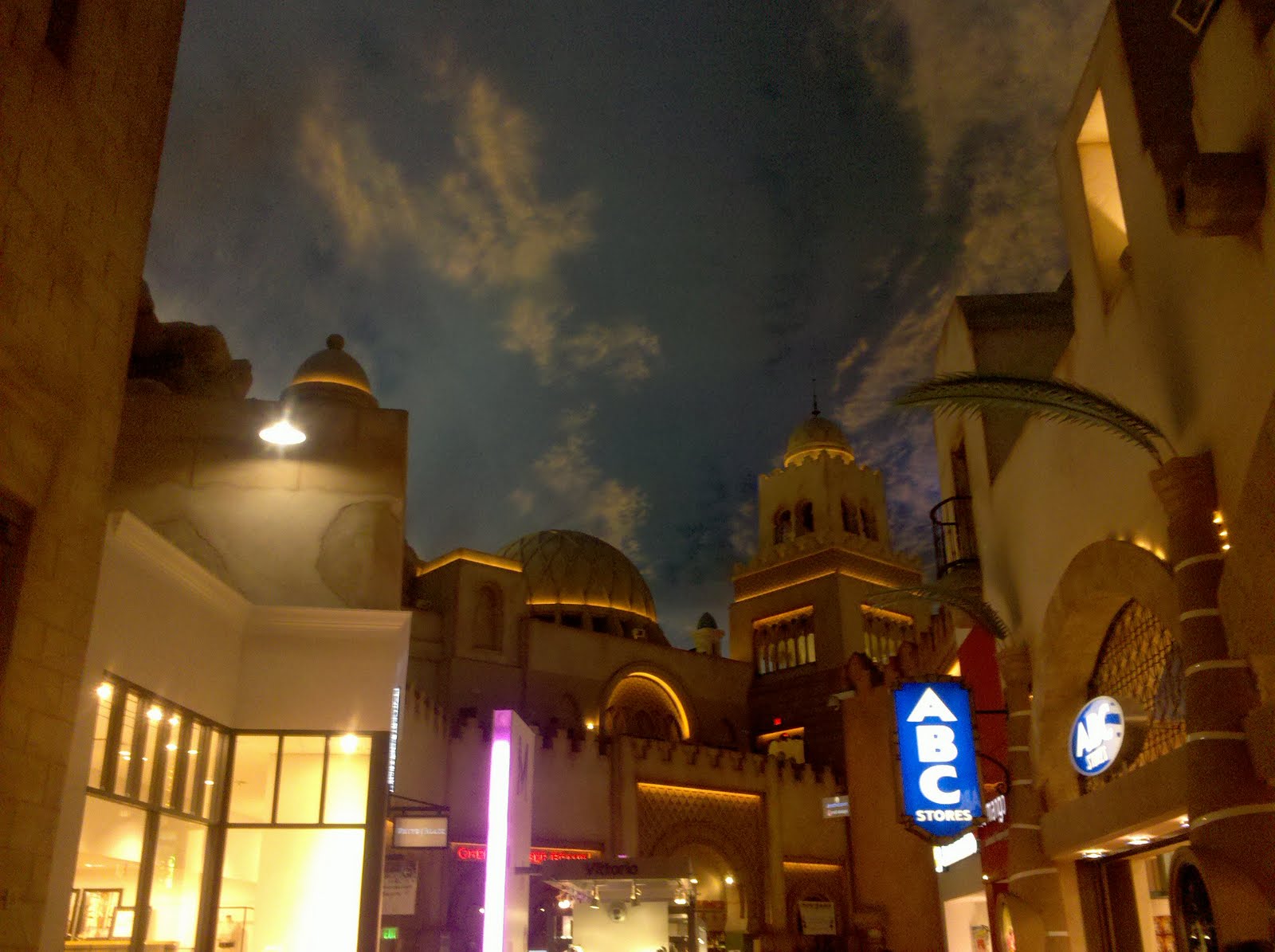 We took refuge from the heat in the Miracle Mile mall. One part of the mall had a giant domed roof painted like the sky with small buildings built within it. Yo Dawg, I hear you like buildings.